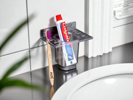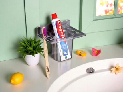 TRYOTONE Wall-Mounted Toothbrush & Toothpaste Holder – Space-Saving, Hygienic Bathroom Organizer with Drainage Slots – Ideal for Modern Countertops, Clean, Dry (Pack of 2)