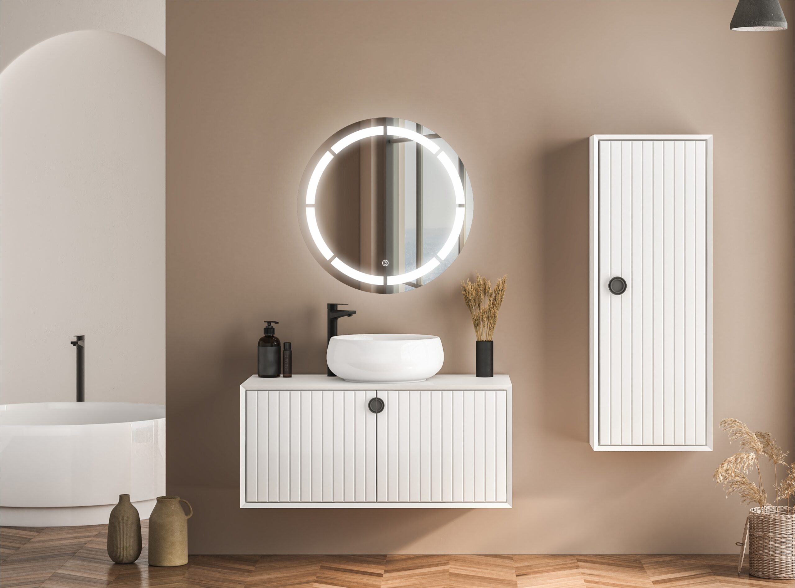 - ✔ Sleek Frameless Round Design: A minimalist and modern 24 x 24-inch round LED mirror that enhances any space. The seamless, borderless design creates a contemporary aesthetic for bathrooms, vanities, and entryways.