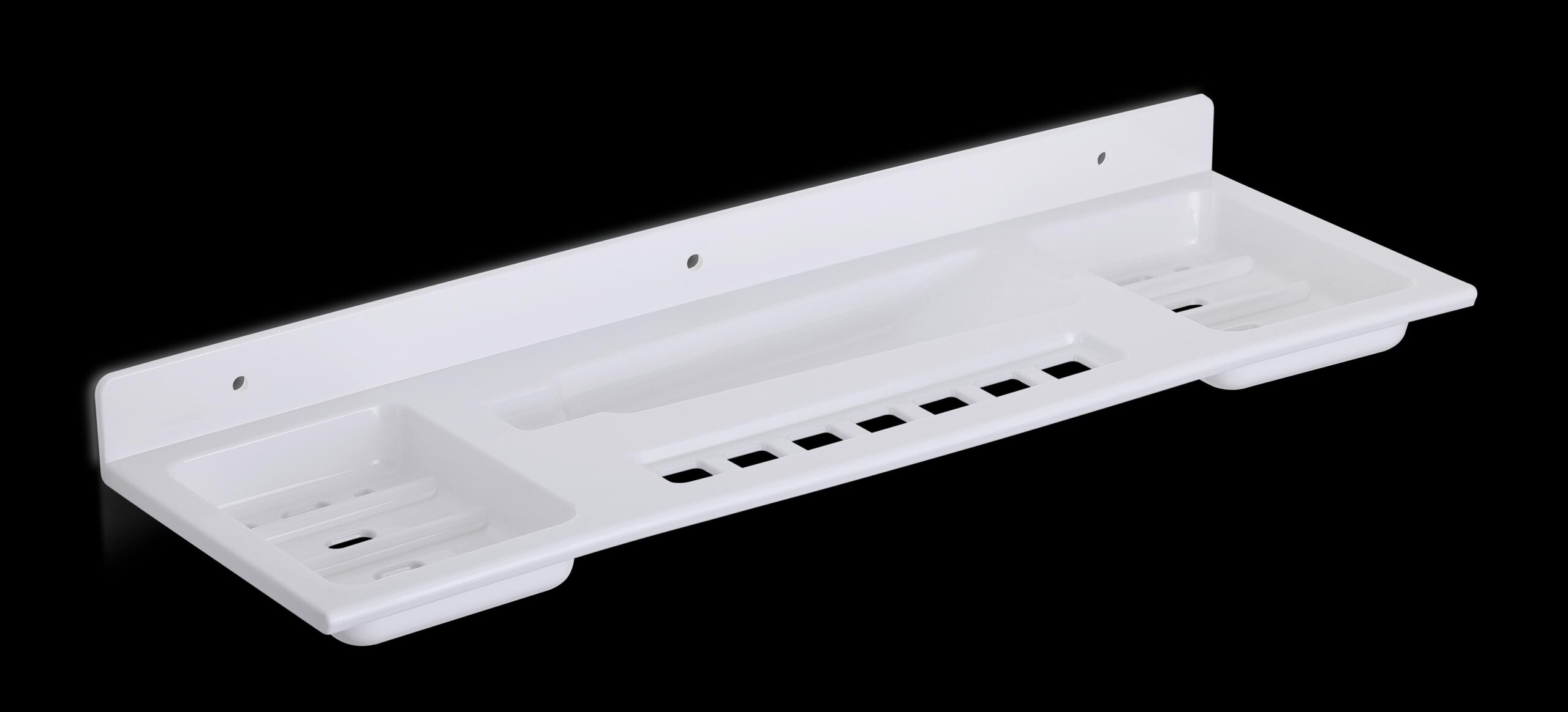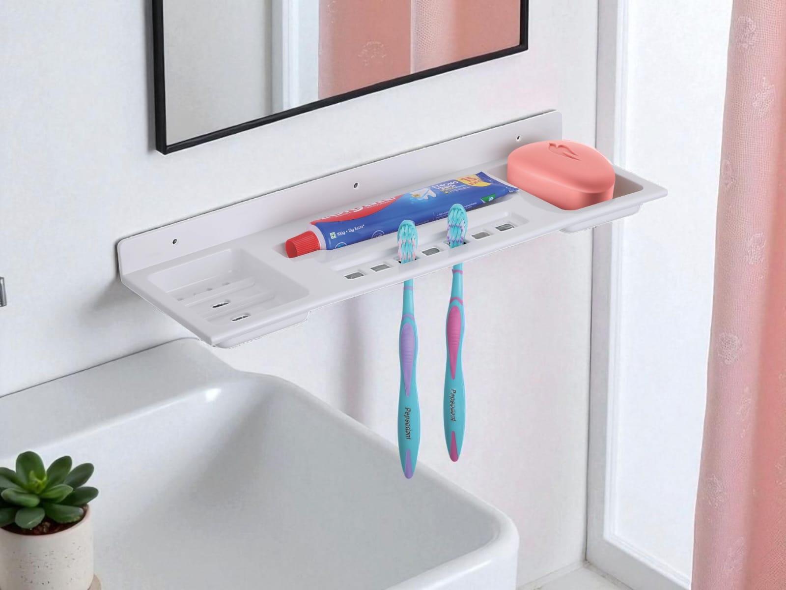 TRYOTONE Wall-Mounted Plastic Bathroom Organizer with Dual Soap Dishes & Center Utility Slot – Space-Saving, Durable White Holder for Toiletries, Brushes, and More – Sleek Modern Design(pack of 2)